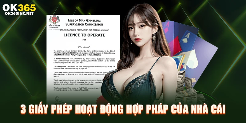 Như vậy, những giấy phép hoạt động mà nhà cái OK365 đang sở hữu đã cho thấy rõ mức độ hợp pháp, uy tín của thương hiệu trong lĩnh vực giải trí trực tuyến. Các chứng nhận này vừa khẳng định chất lượng dịch vụ vừa củng cố niềm tin cho người chơi. Nếu đang tìm kiếm một địa chỉ giải trí chuyên nghiệp, minh bạch, đây chắc chắn sẽ là lựa chọn khiến bạn hài lòng.